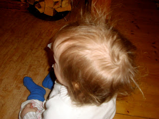 Hennes snygga sovfrisyr - som hon oftast har dygnet runt! Jag vet att jag lagt ut bilder med det innan, men då syntes det knappt eftersom håret var så kort! |